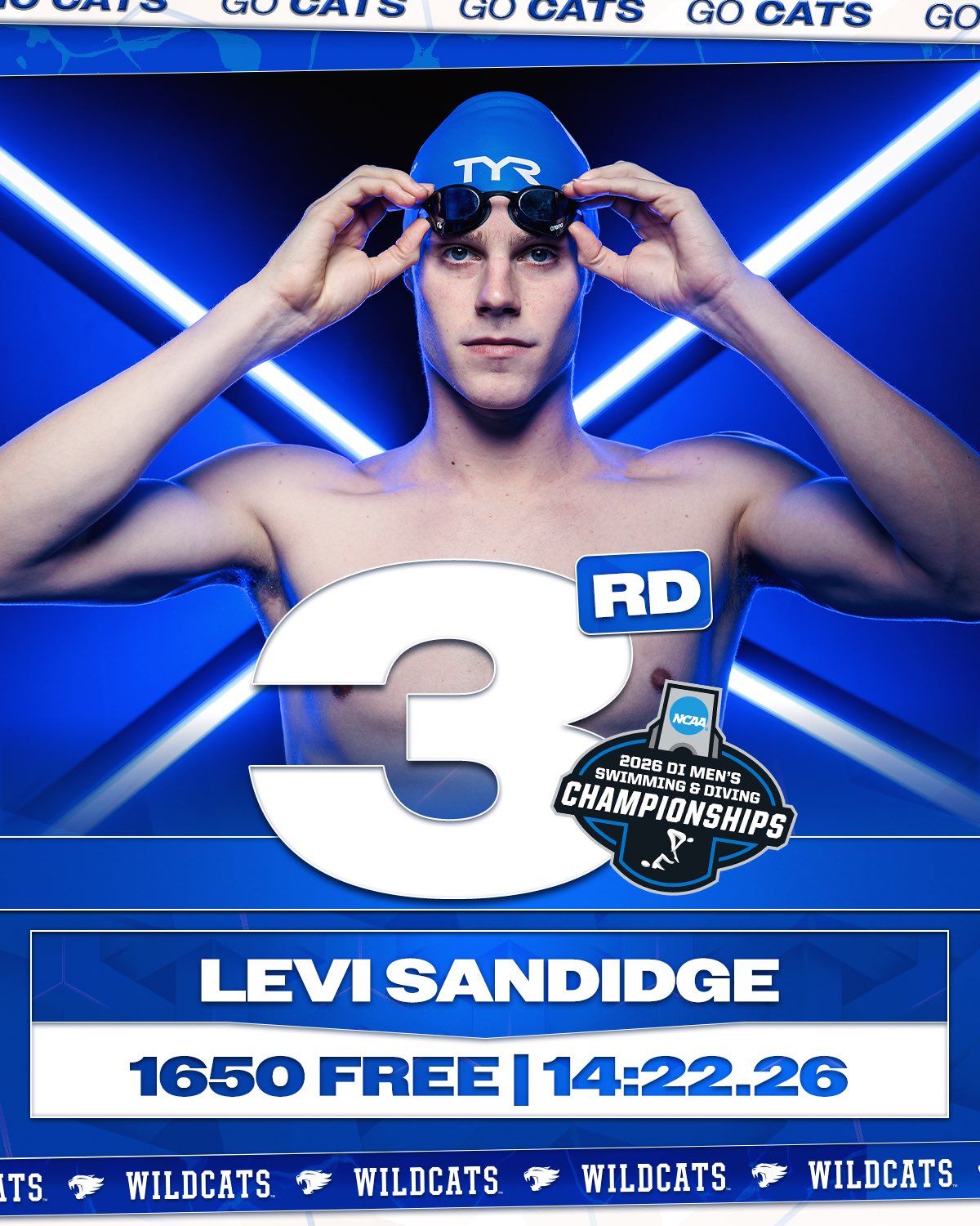 🔼 So Fast. The men’s swim and dive team started competition at the NCAA Championships. Senior Levi Sandidge swam for third in the 1650 freestyle. He notched a personal best, program best and the fifth fastest time in event history. Carson Hick and Dziugas Miskinis finished eighth and 19th overall, respectively.