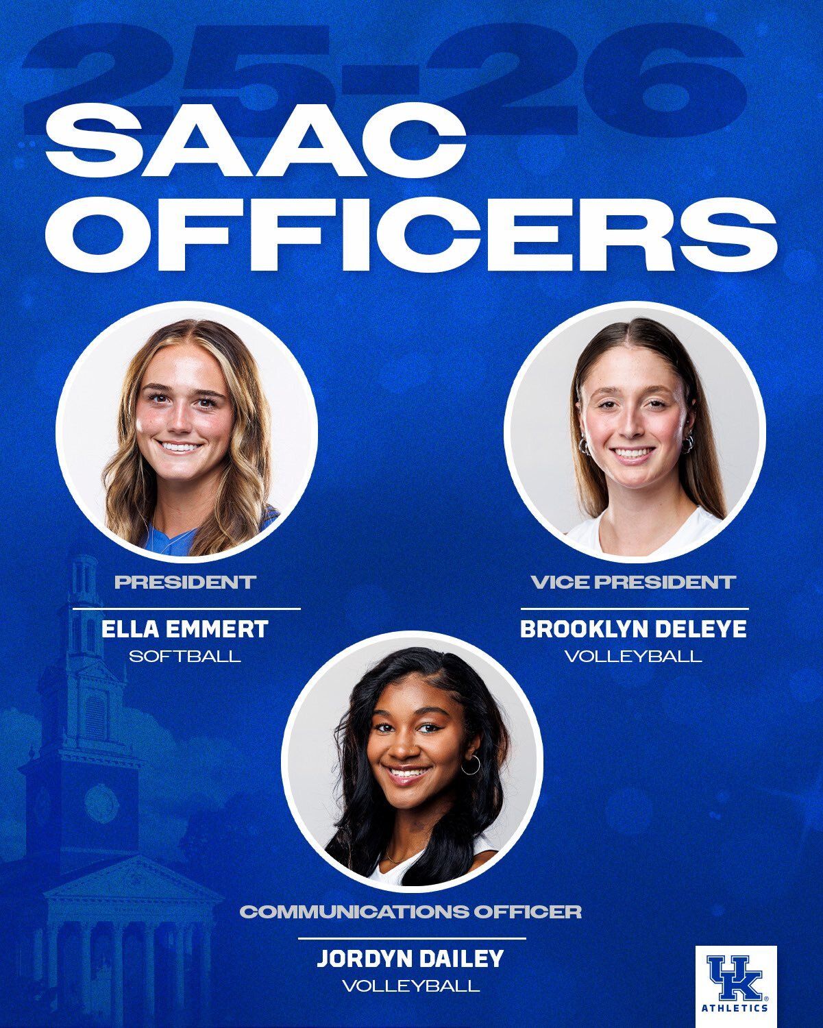 The Staff. The officers for the 2025-26 Student-Athlete Advisory Committee have been announced! Softball player Ella Emmert is the President, volleyball player Brooklyn DeLeye is the Vice President and volleyball player Jordyn Dailey is the Communications Officer.