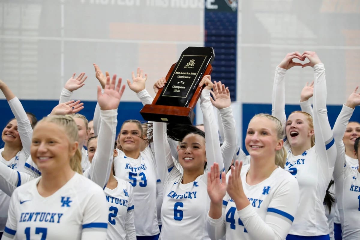 🔼 Tourney Stats. The stunt team won a pair of games in the Mid America West Tournament on Saturday. The Cats beat Mercyhurst 31-9 and Missouri State 35-12. The team had a record-setting day on Sunday and claimed tits second straight Mid America Conference Tournament championship. Kentucky beat Missouri State 27-6. The Cats also tied the program record for wins in a season with 29 and established a new program record with their 20th consecutive victory. Four UK players earned All-Conference tournament awards. Isabella Doria and Isabella Franzella were named first team all-conference, while Mackenzie Secrest was named to the second team. UK’s Abby Henderson received the Mid America Conference Most Inspirational Award.