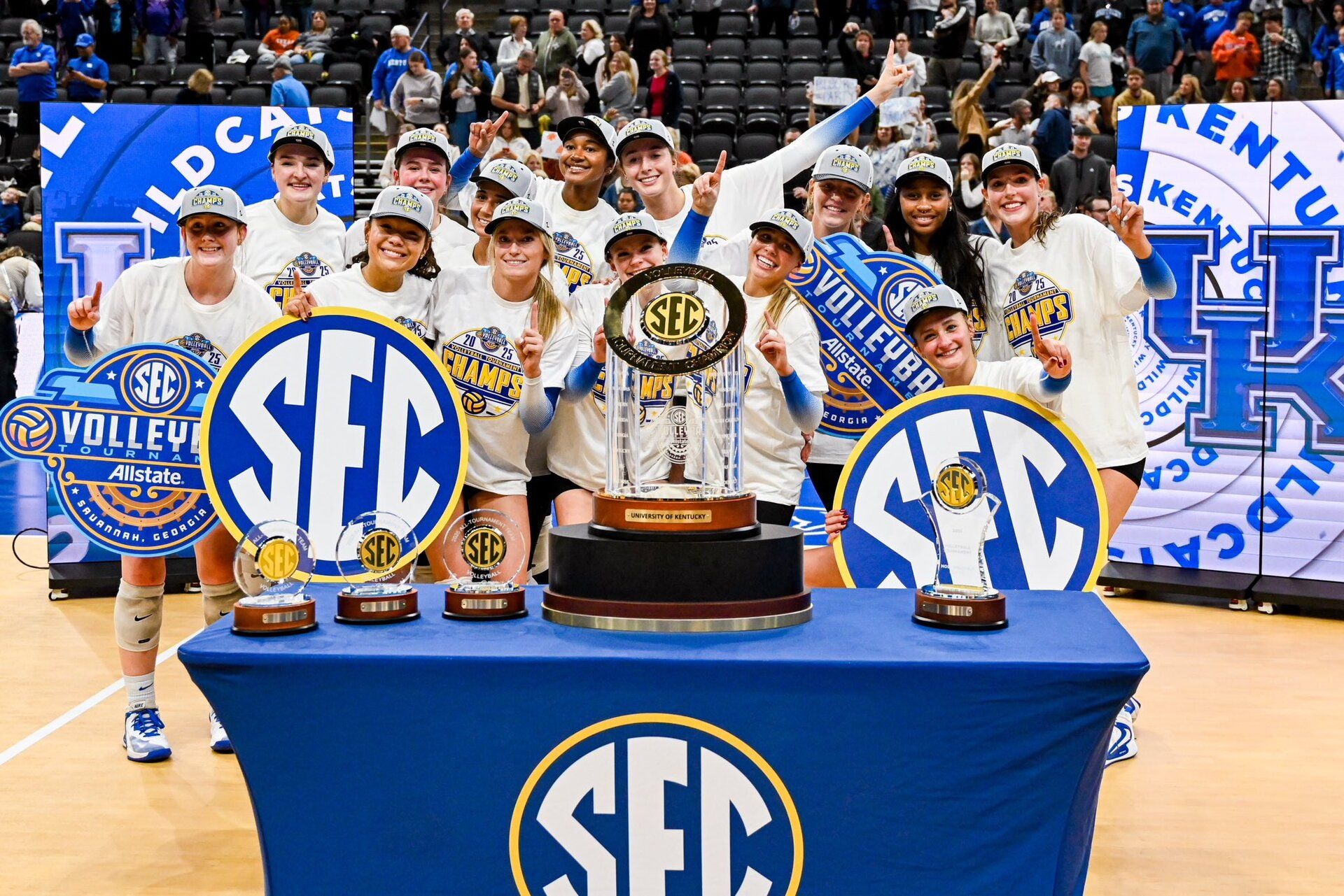🔼 CHAMPS! The volleyball team beat Texas 3-2 to win the SEC Tournament championship match. The Cats had a huge comeback after losing the first two sets. Eva Hudson led the team with a double-double of 25 kills and 11 digs. Kentucky has secured an automatic qualifying spot in the NCAA Tournament.
