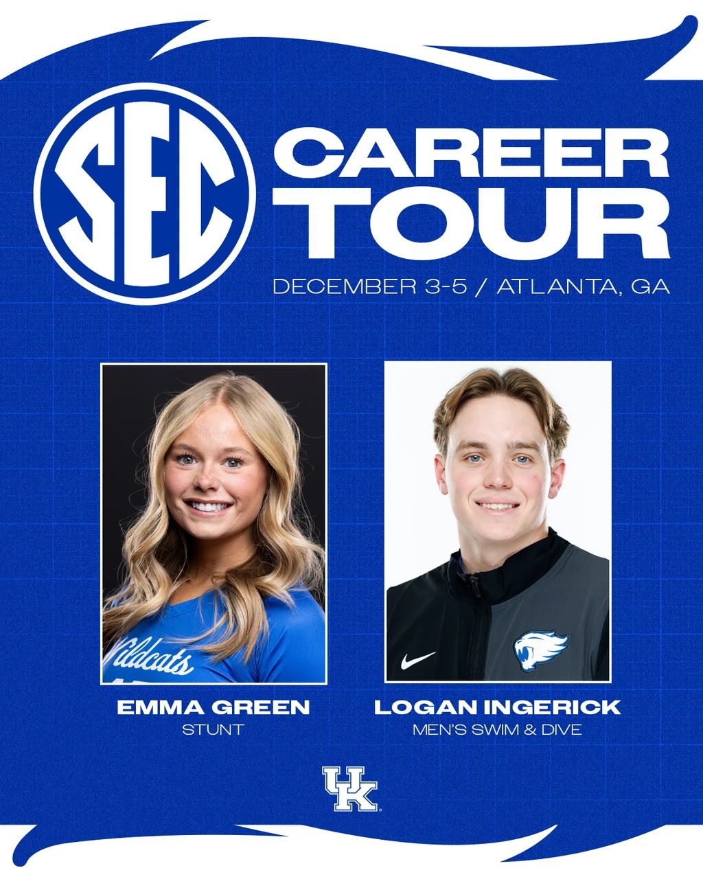 On Tour. Two Kentucky student-athletes will compete in the 2025 SEC Career Tour: Emma Green and Logan Ingerick. Green is a junior on the STUNT team. Ingerick is a senior on the swim and dive team. The SEC Career Tour provides exposure for SEC student-athletes who are seeking career opportunities in various fields. During the three-day tour, the group plans to visit several corporations and organizations in the Atlanta area.