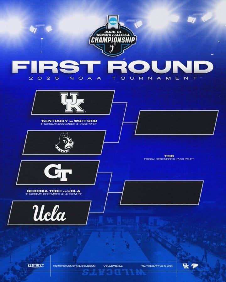 🔼 All Set. The volleyball team was named the No. 1 seed in the Lexington Regional! Kentucky was also named the No. 2 overall seed in the NCAA Volleyball Championship. The Cats are 25-2 overall and 15-0 in conference play. The women will face Wofford on Thursday at 7pm ET at Historic Memorial Coliseum. All session tickets go on sale today at 10am ET.